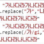 JavaScript replace를 Java replaceAll 처럼 사용하기 가끔 무의식중에 js에서 replace를 하고 다 바뀐 줄 알 때가 있다. 그러고나서 프로그램 돌려보면...ㅎㅎ.. 그렇다. 그리고 가끔은 replace 해 준 것을 도로 집어넣지 않아서 무용지물일 때가 있다. 이건 내 잘못 데헷! 까먹지 말고 기억 해 두자는 의미에서 적기로 한다. var str = "가나다라가나다라가나다라";str = str.replace("가","나"); 로 하면 결과는 "나나다라가나다라가나다라" 가 되어버린다. 내가 원하는건 "나나다라나나다라나나다라" 인데 힁.. 자바는 편하게 replaceAll 해주면 알아서 다 바뀌는데 이건 안그렇다. 그러기위해선 변경 할 문자열에 따로 추가를 해 준다. var st..